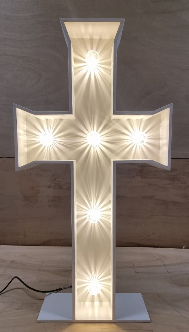 Enhance the beauty and solemnity of your christenings with the stunning Cross Light 4ft. This exquisite white light-up cross will add a touch of elegance to your special event, creating a serene and luminous ambiance that will captivate your guests.